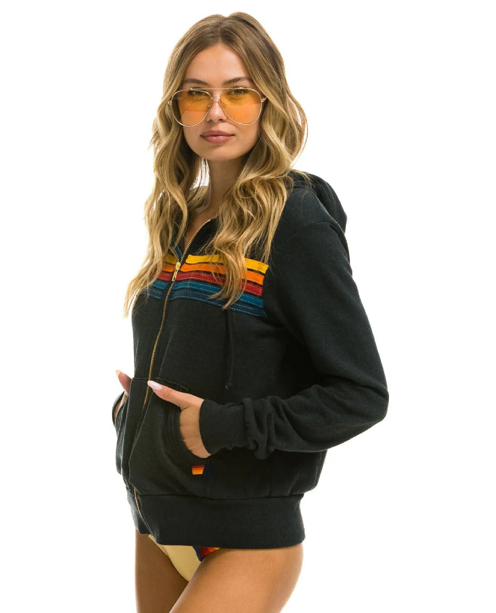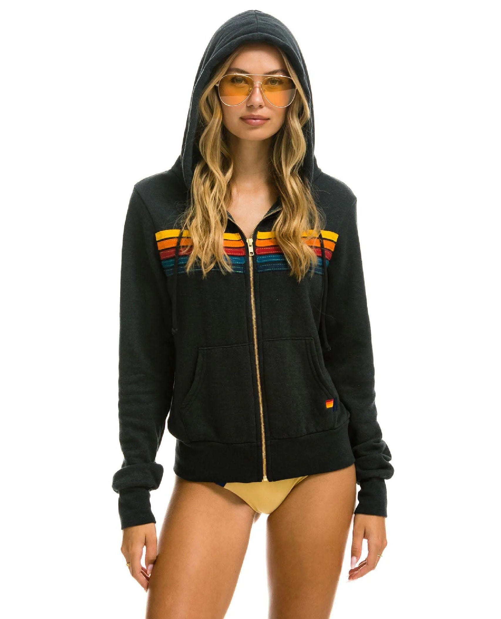 Aviator Nation – 5 Stripe Zip Hoodie in Classic Rainbow / Charcoal