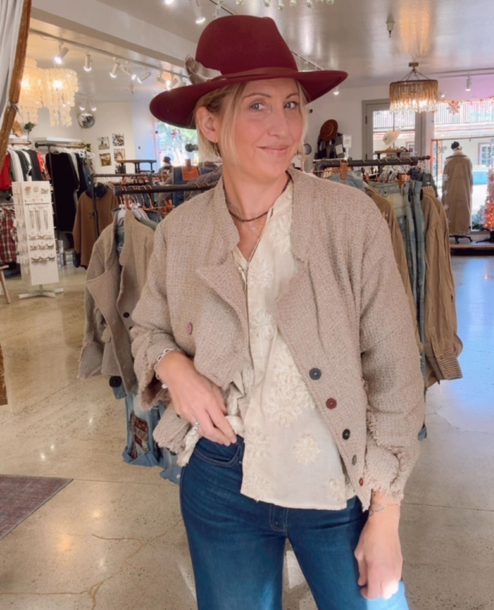 Meet the jacket that feels collected, artful, and completely one-of-a-kind. Jaded Gypsy’s A Moment in Time Jacket is that perfect boho tweed layer — relaxed, soulful, and full of thoughtful details. Designed and made in Los Angeles in a soft 50/50 cotton–poly blend, it’s the easy statement piece you’ll reach for all season.