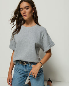 The Bane Sweatshirt Tee has an easy, relaxed fit with a slightly boxy shape that feels modern and flattering. Designed to hit at the hip with roomy sleeves and a casual drape, it gives you that effortless sweatshirt feel in a short-sleeve silhouette. True to size for a relaxed fit; size down if you prefer it a bit more fitted.