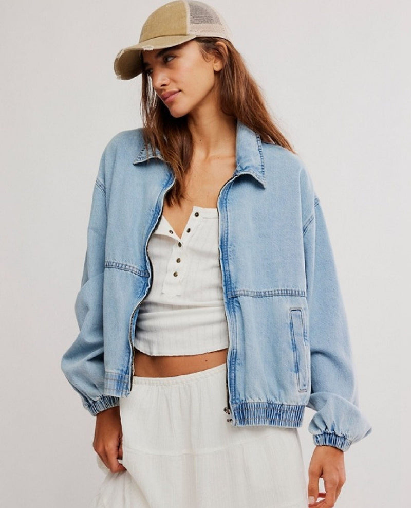 Free People – Denim Track Jacket in Mockingbird (Birdie)