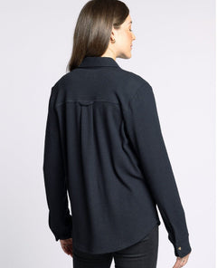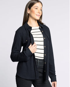 Vibe: Clean, cool, and impossibly easy — the kind of black flannel that always looks intentional, even when you’re just going for comfort.