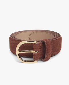 Crafted from rich, premium suede in a deep chocolate brown, this belt features a sleek gold buckle that adds a refined, modern touch. The suede is smooth, durable, and elevated—made to wear beautifully over time. To care for the suede, gently brush with a suede care tool and spot clean when needed. Avoid water exposure to maintain the texture and finish.
