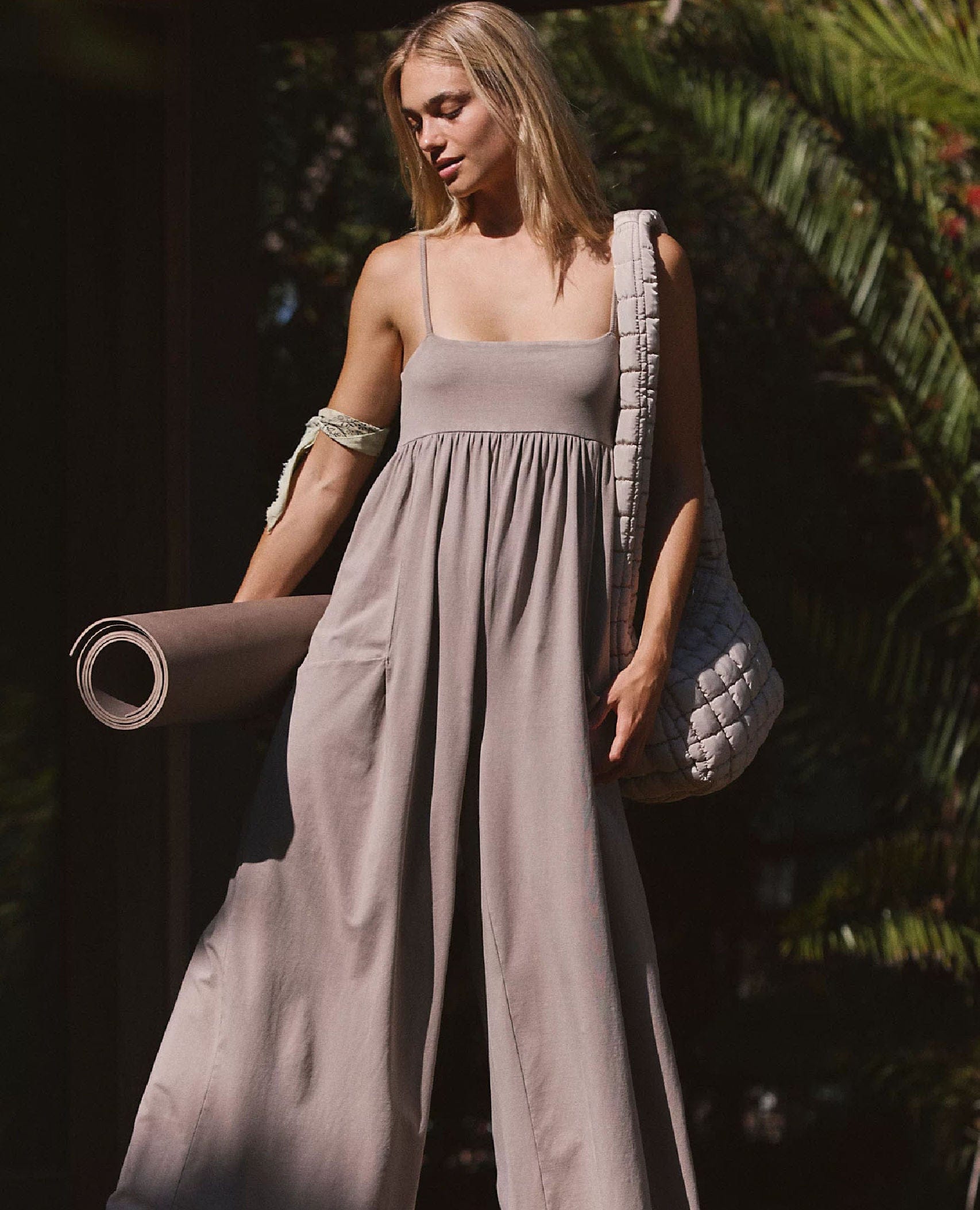 Your favorite Hot Shot onesie, now with a flirty twist. The Strappy Hot Shot Onesie from FP Movement takes laid-back comfort to the next level with a soft, stretchy cotton blend and breezy, wide-leg silhouette. The fitted square-neck bodice and adjustable spaghetti straps keep it cute, comfy, and ready for whatever your day brings.