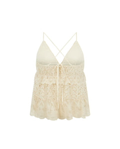 Crafted from a delicate lace with a soft handfeel and subtle structure for shape. The fabric is lightweight and breathable, perfect for warm nights or layering year-round. Hand wash cold, lay flat to dry, and avoid snagging on sharp accessories to keep the lace looking beautiful.