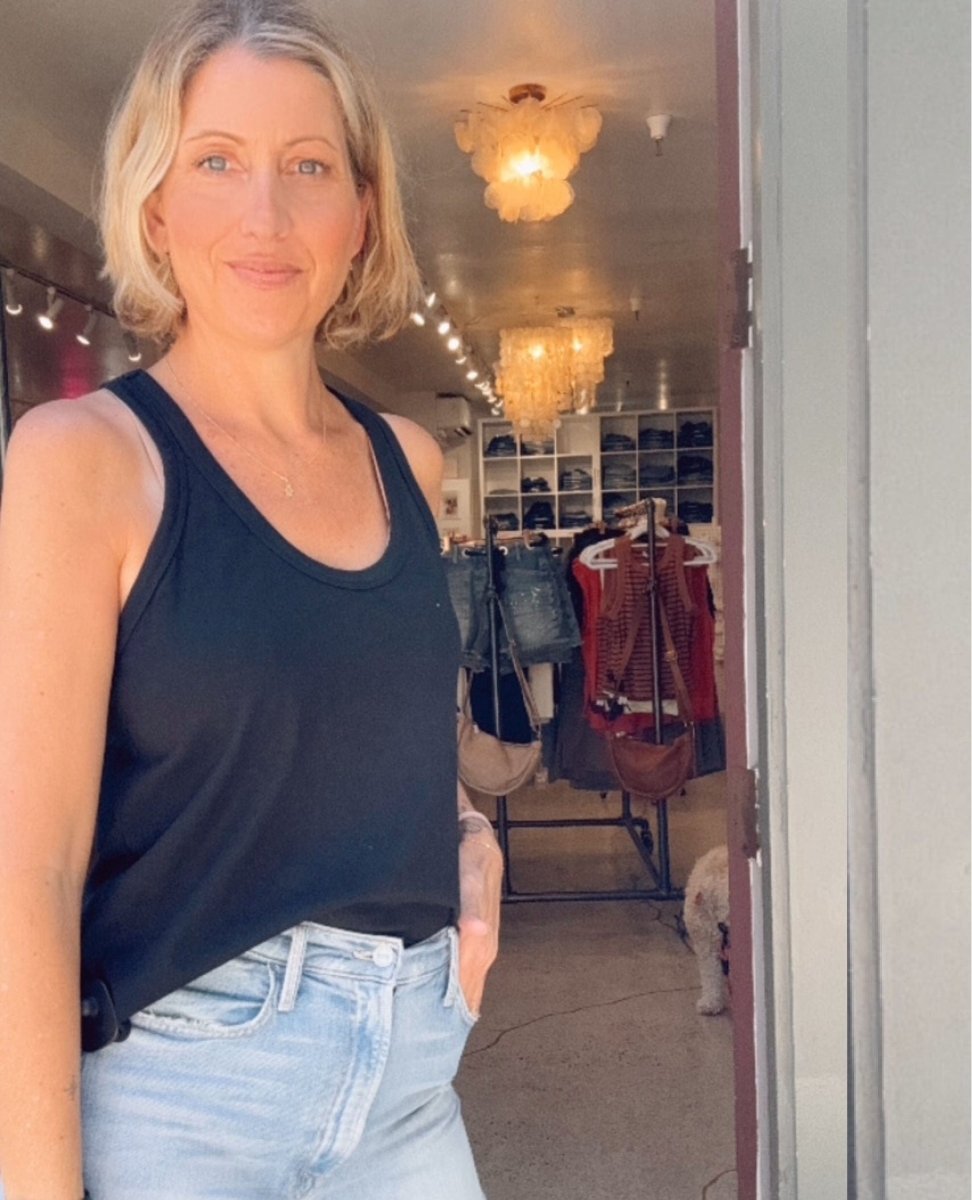 Back to Basics. Jett is new this season in our ultra-soft cotton jersey. This racerback tank features wide self-binding along the neck and a curved high low shirttail hem. Pair back with the Crispin pant for ultimate ease and comfort.