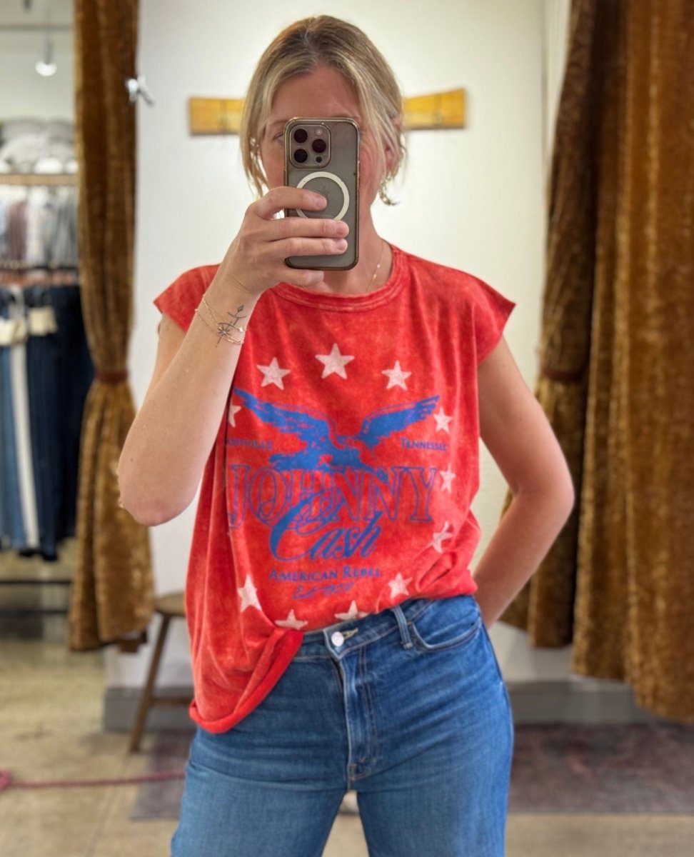 Johnny Cash Muscle Tank Red