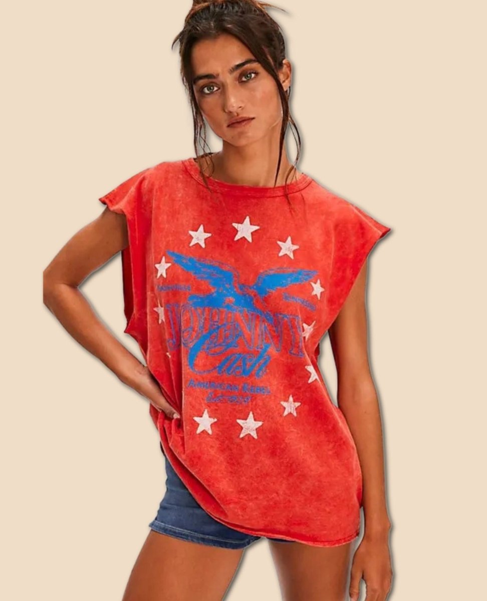 A true tribute to a deep-rooted country legend, Johnny Cash is now featured on a striking acid wash muscle tank—a perfect match for his bold, baritone legacy.