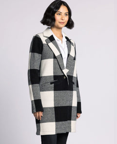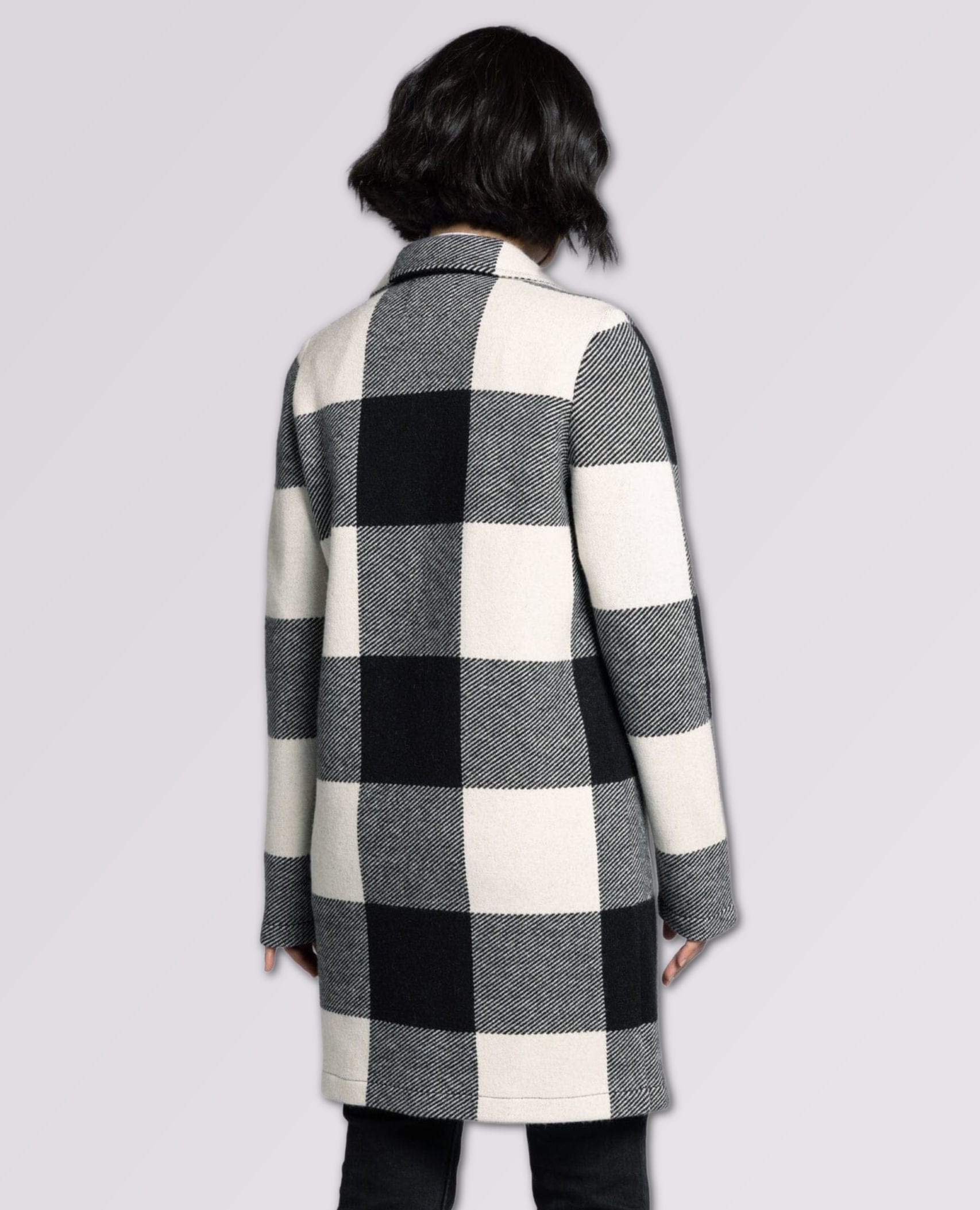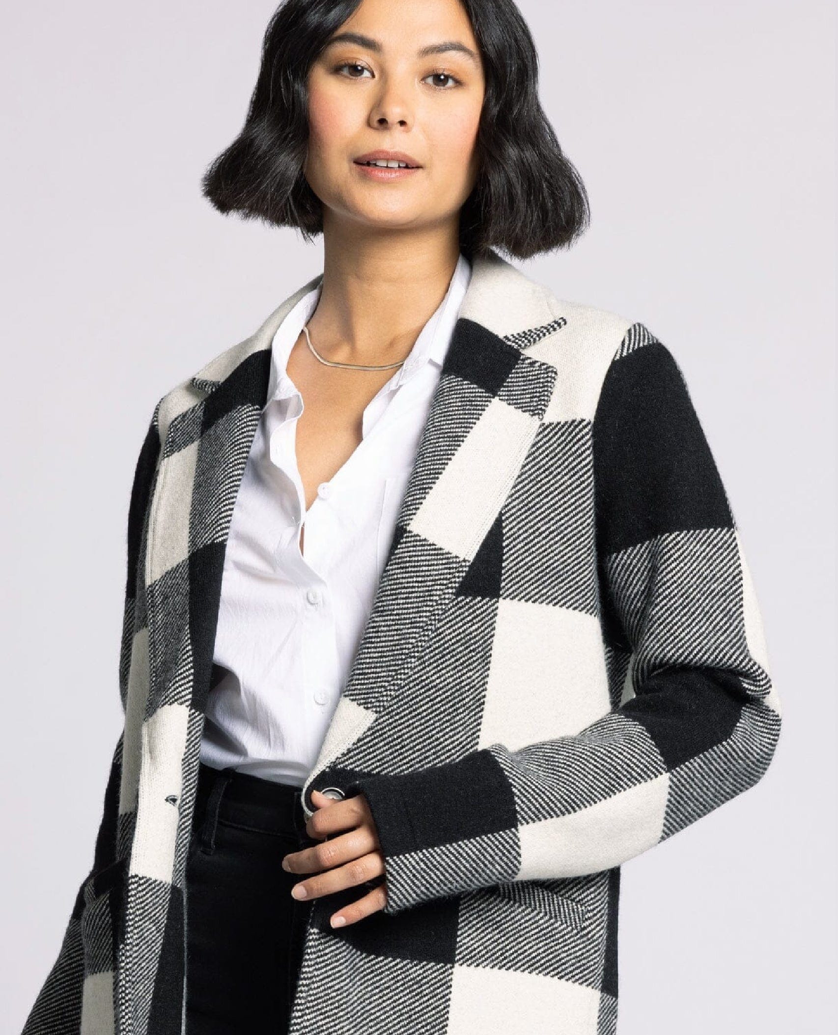 The Kenzie Coat is that effortlessly cool layer you’ll reach for all season long. With its bold black-and-white check pattern, soft brushed feel and relaxed, throw-on-and-go fit, it instantly elevates denim-and-tee days or adds a cozy finish to your favorite knit set. Warm without being heavy, stylish without trying — this one does it all.