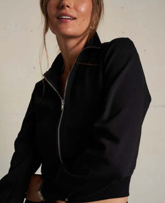 Meet the Milana Jacket—your new everywhere layer. This slightly cropped zip-up brings a subtle retro track vibe with a clean, modern fit that feels polished but never fussy. Made from a soft, perfectly weighted cotton-poly-spandex blend, it moves with you and holds its shape, whether you’re sprinting through an airport or styling it up for the day. The smooth zip, sharp collar, and easy side pockets keep things effortless and functional, with just the right amount of throwback cool.
