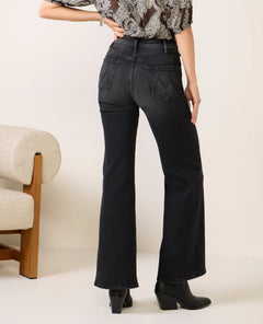 Meet the jean with a mood. The Hustler Roller Sneak in “Not Today Satan” brings MOTHER’s signature attitude with a vintage-black wash, subtle fading, and a wide, floor-skimming leg that instantly elevates any look. The high-rise fit hugs in all the right places before breaking into an easy, dramatic flare that feels modern, confident, and a little unbothered—in the best way.