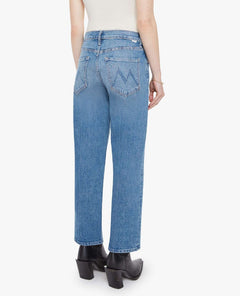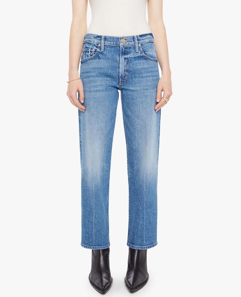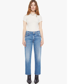 A fresh take on the straight leg. The Newbie Ankle from MOTHER features a mid rise, slim hip, and an easy straight cut that hits just above the ankle — a modern silhouette that works with everything in your closet. The wash, Hokey Pokey, is a soft medium blue with gentle fading and whiskering that gives the perfect lived-in feel from day one.