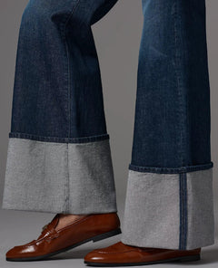 Meet the jean that knows how to play. The Hustler Roller Sneak in Cuffed Kicks and Riffs is a full-length wide leg with a dramatic, floor-grazing cuffed hem that gives every step a little extra attitude. The wash blends vintage-inspired fading with modern edge, creating that perfectly broken-in look MOTHER does so well. Easy, bold, and effortlessly cool, it’s the kind of pair that turns an everyday outfit into a moment.