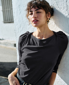 The Amelie Top by Nation LTD is effortlessly cool with just the right amount of detail. Featuring a gathered scoop neckline, subtle puff sleeves, and a flattering, slightly relaxed silhouette, this top strikes the perfect balance between everyday ease and understated drama.