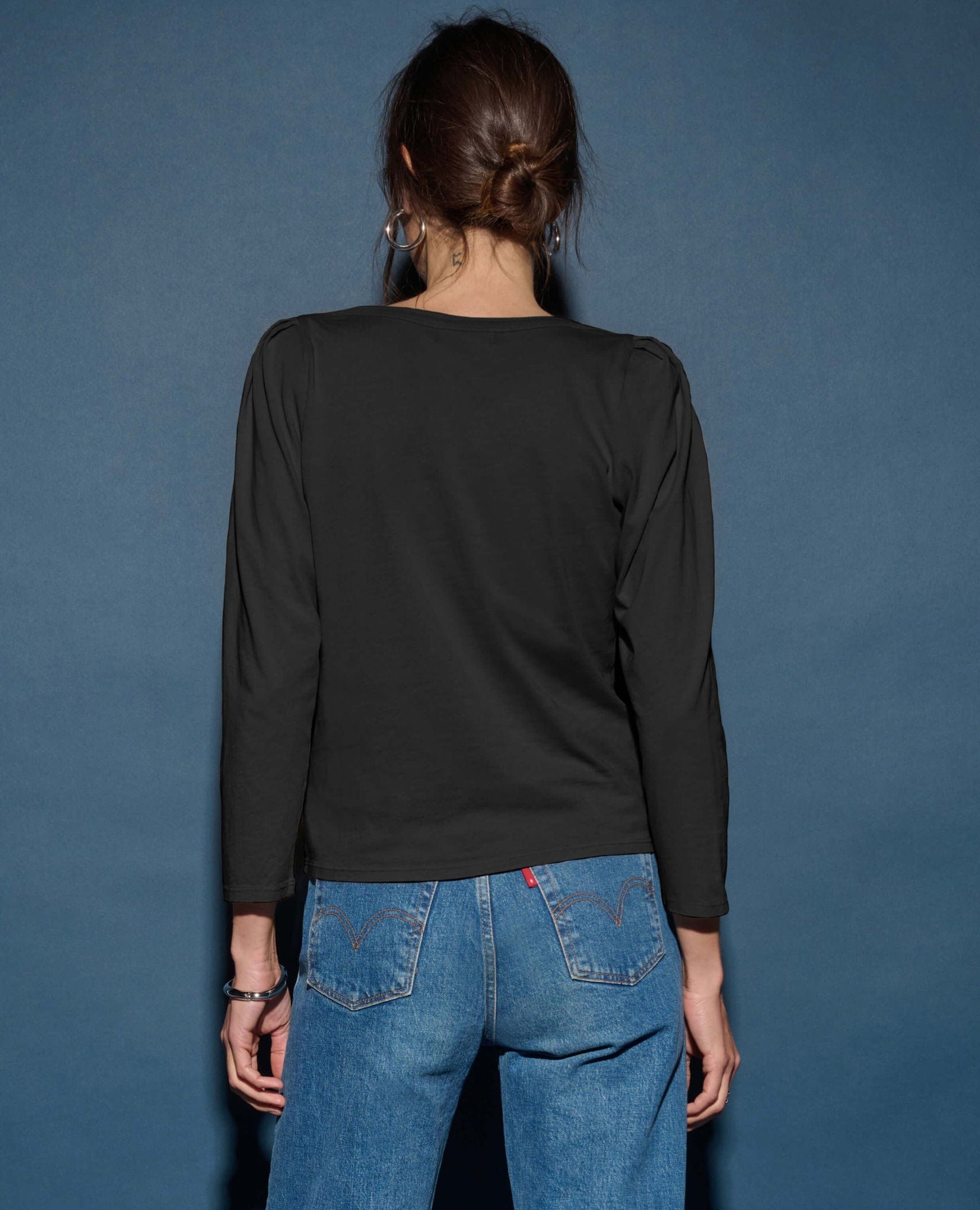 In Jet Black, it’s an elevated essential you’ll reach for on repeat—whether you’re dressing it up with wide-leg trousers or keeping it casual with lived-in denim.