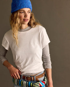 It’s the ultimate throw-on-and-go tee that still feels styled. The raised seaming and soft heathered fabrication give it texture and personality, while the slim shape makes it endlessly versatile. You’ll reach for it again and again.