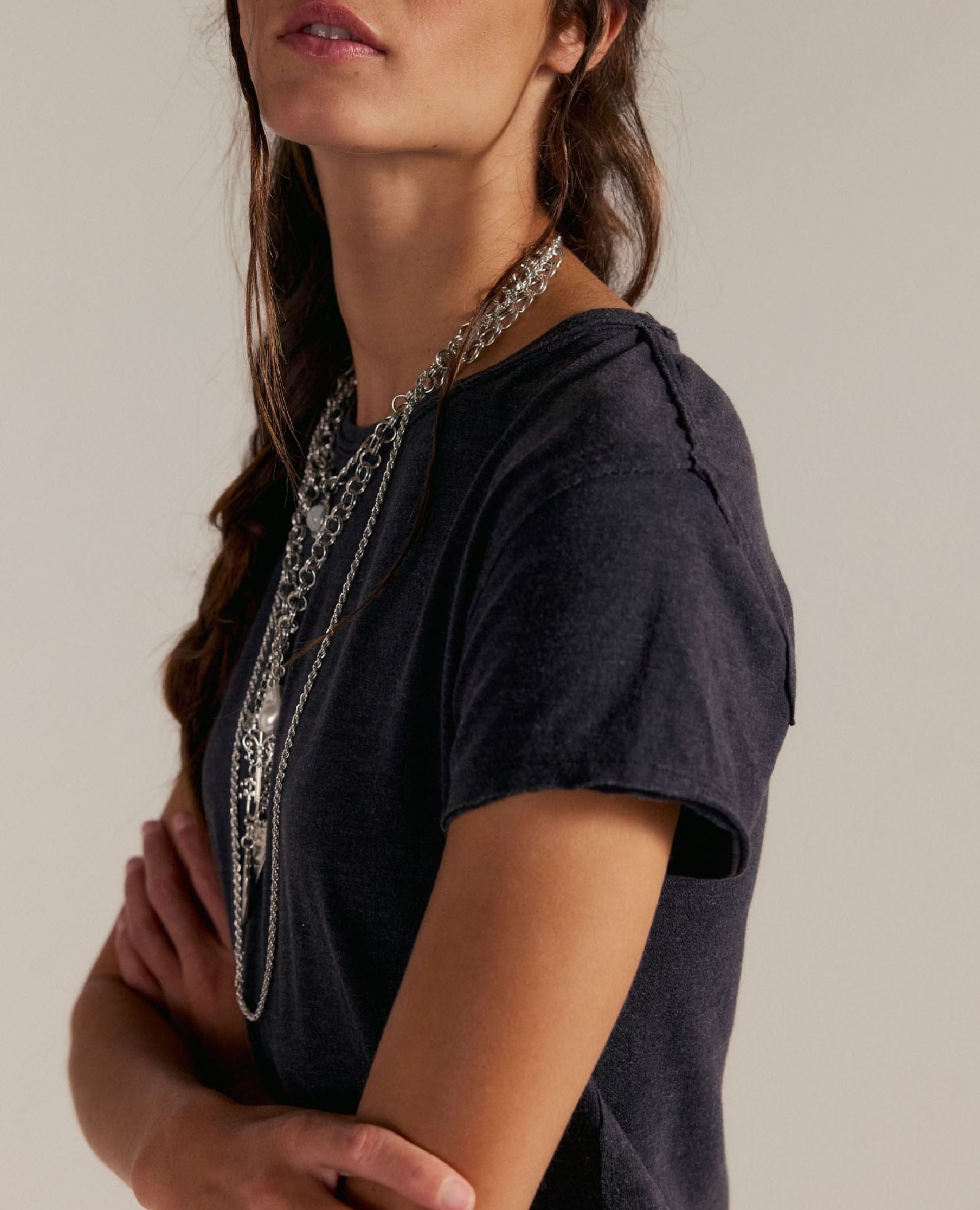 It’s the ultimate throw-on-and-go tee that still feels styled. The raised seaming and soft heathered fabrication give it texture and personality, while the slim shape makes it endlessly versatile. You’ll reach for it again and again.