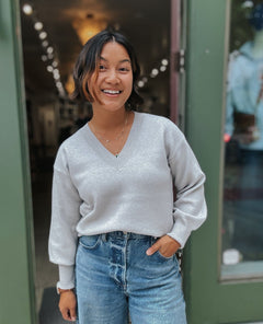 OAT New York V-Neck Balloon Sleeve Sweater – Harbor Grey