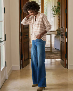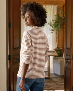 Popover Henley - Vintage White and Camel Stripe
