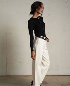 Perfect White Tee – Maureen Long Sleeve Ribbed Cardigan – True Black