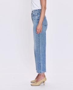 The Lana Crop by Pistola is a modern take on the classic straight leg, designed with a flattering high rise and a cropped silhouette that hits just above the ankle to highlight your favorite shoes. The Bistro Bistro wash is a medium blue with soft fading and whiskering, giving it that laid-back, lived-in feel that works with everything in your closet.