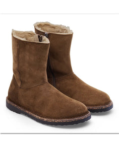 Introducing the brand new BIRKENSTOCK Zip Uppsala. The perfect cozy, mid-high boot with a warm genuine shearling lining. The upper is made from especially soft suede. The sole is made of TR rubber for added grip and durability. These versatile boots will help you stay stylish and supported, even on chilly days.