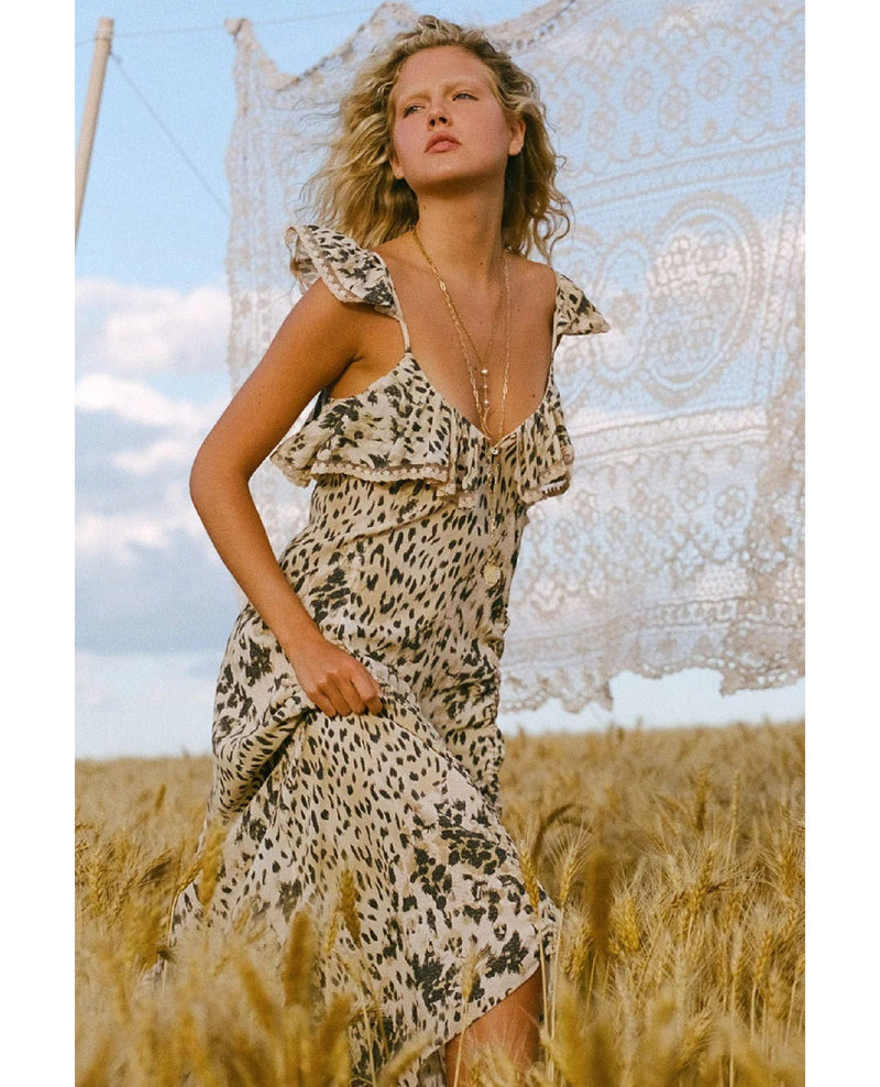 Spell Snow Leopard Strappy Dress