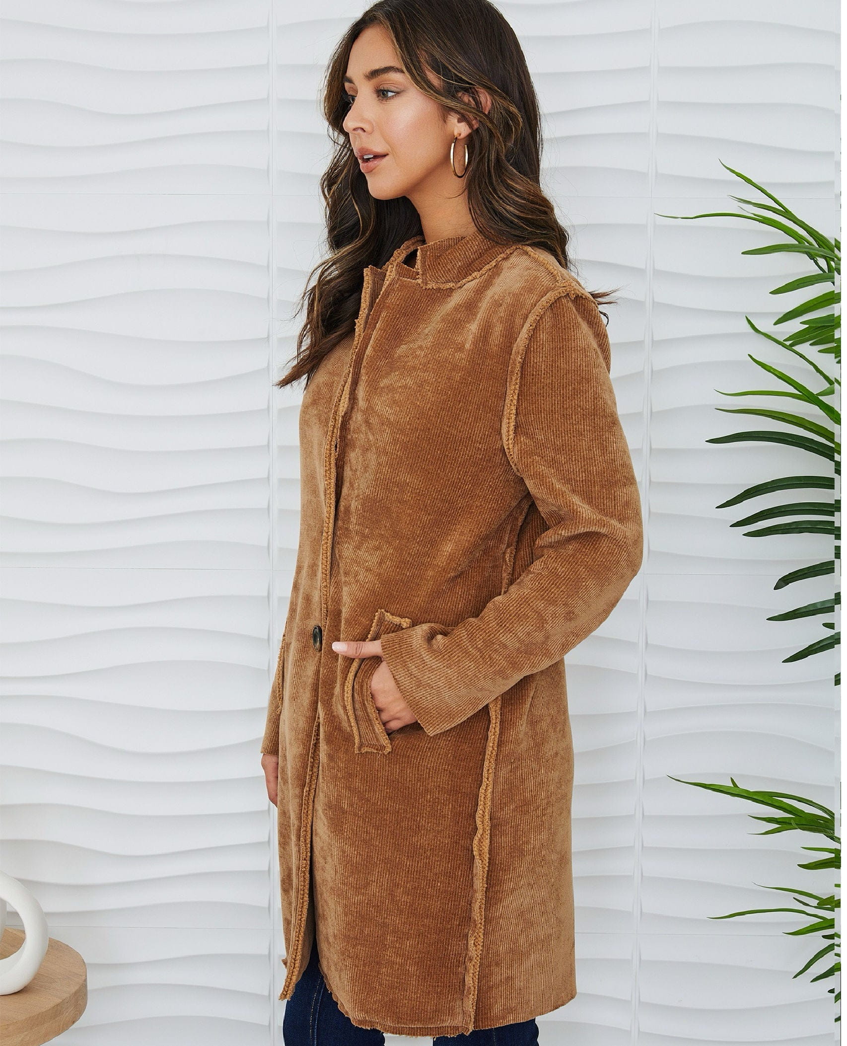 This is the kind of coat that instantly elevates simple outfits. The soft corduroy texture adds richness and warmth, while the clean lines keep it feeling modern and timeless. Easy, versatile, and season-spanning — exactly what we look for in a forever layer.